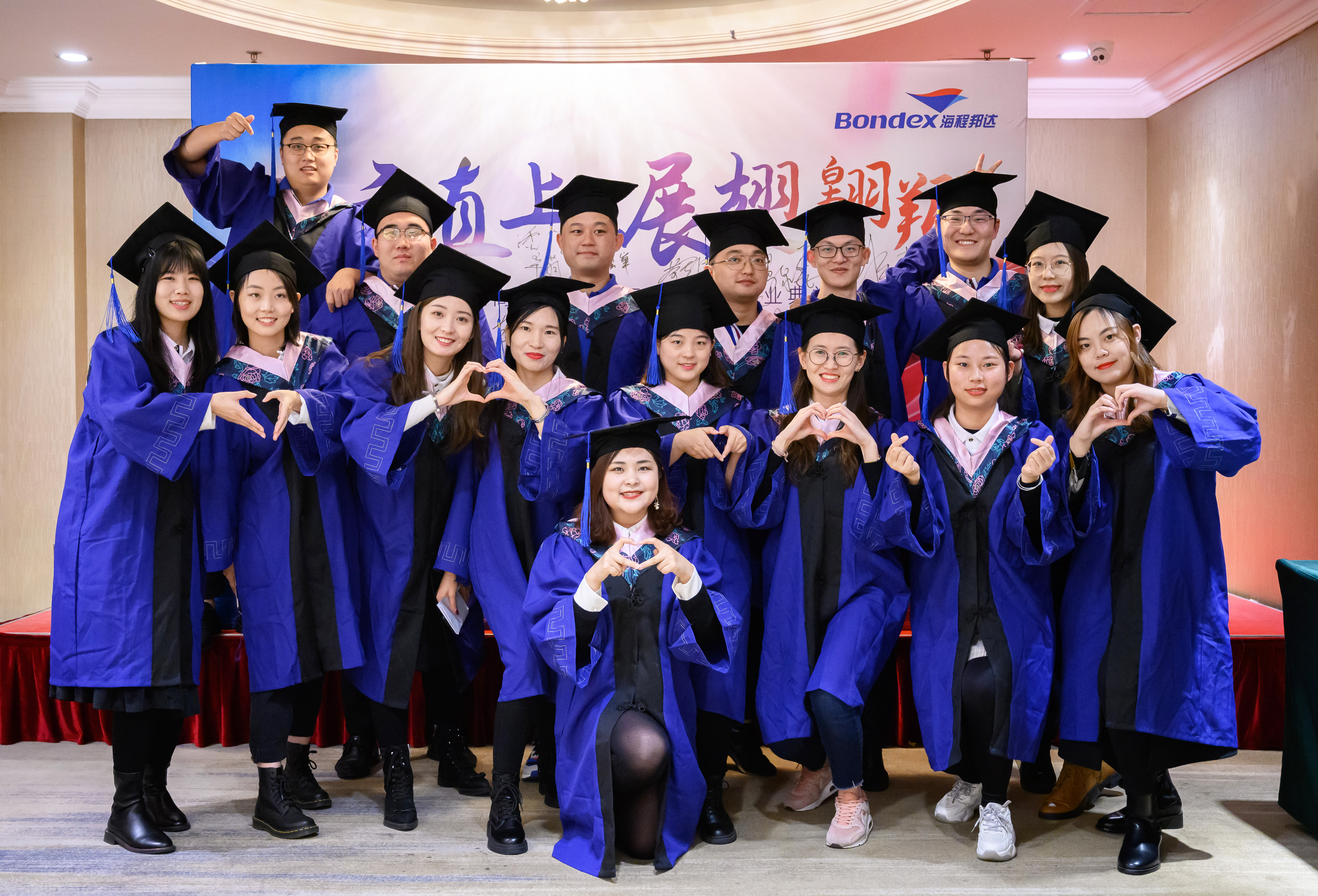 On November 20, 2020, the 2019 Flying Eagle Phase II Graduation Ceremony of Bondex Business School was grandly held in Qingdao. Students from all over the country, business school leaders and mentors gathered together to witness the growth and transformation of the students in the past year. At the ceremony, Mr. Tang congratulated the students on successfully completing their studies and made three requirements for everyone. He said: "As a Bondex colleague who inherits and carries forward the spirit of'continuous struggle', we must strengthen our confidence on the way forward and actively embrace changes. , Dare to face challenges, and gain extraordinary results from the ordinary. I hope that the students will inspire youth in the new journey, continue to work hard, and be courageously forge ahead, pioneers and devotees of the new era." During Mr. Tang's speech, the students were in high spirits, applauded warmly from time to time, and gave out knowing laughter. At the meeting, the business school also commended the outstanding students, and the representatives of outstanding students gave a speech on the award. Then, Zhai Ming spoke as the representative of the mentor. He shared his growth story in the company. As well as the business accumulation and thinking of customs declaration management positions, only later have the opportunity to participate in customs reform pilots such as integration of customs clearance, integration of customs and inspection, and the launch of a single window. I hope that the students will continue to study, break through themselves, and create value for themselves, for the company, and for the society. The growth of Feiying students is inseparable from the careful guidance and help of the instructors. At the graduation ceremony, the students presented flowers to the instructors to thank the teacher. In the graduation performance, the video "Days of Flying Eagle Phase II" allowed everyone to review the learning and harvest, practice and growth of the year. In the end, the students fondly recite the collectively created poem "We Are Flying Eagles", expressing their best wishes and pushing the graduation ceremony to a climax again.