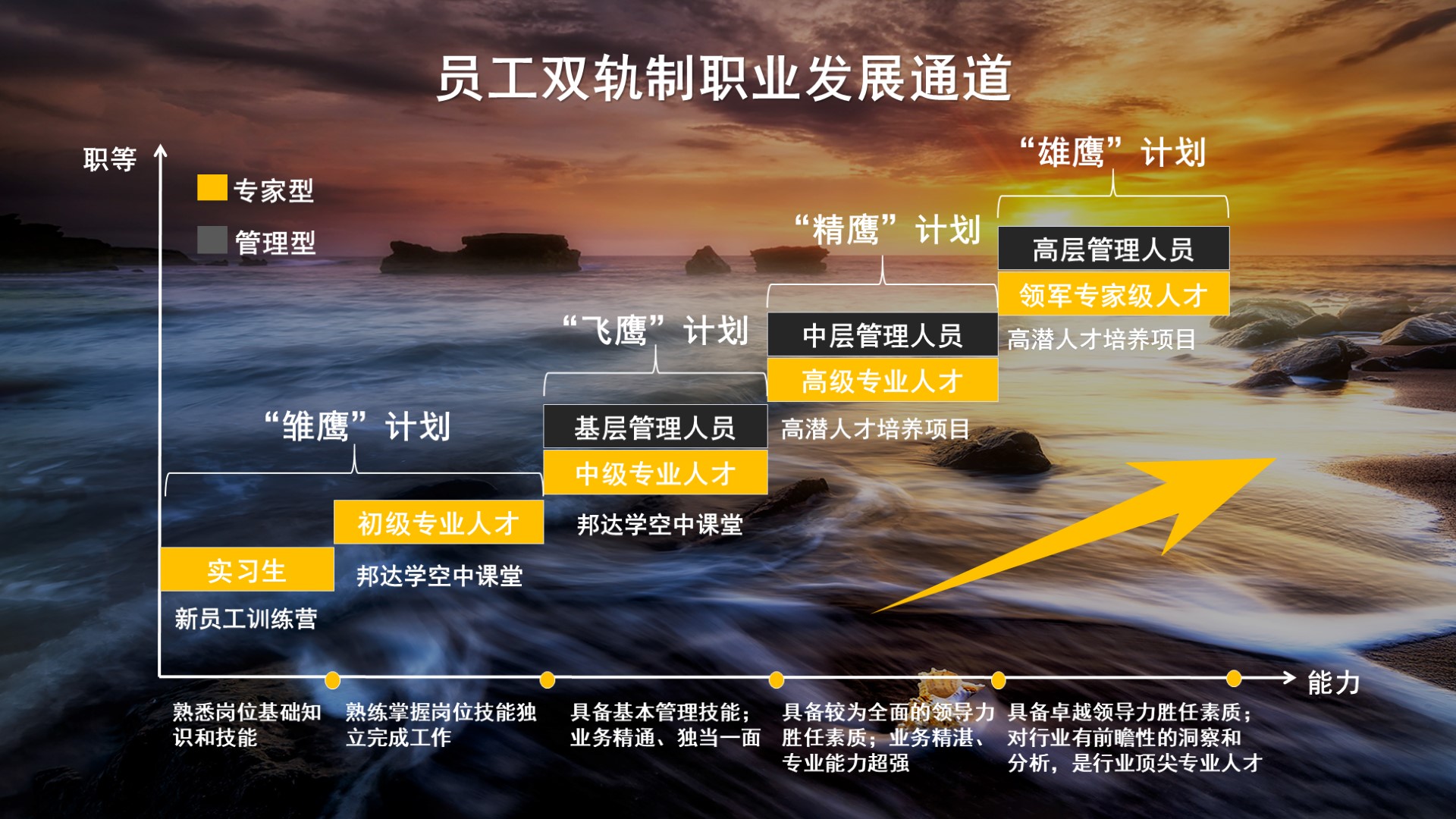 海程邦達商學院為每位員工搭建跨界互通的學習平臺,實施“鷹計劃”等豐富多樣的人才培養項目,為人才發展賦能,培養員工成為行業頂尖人才。