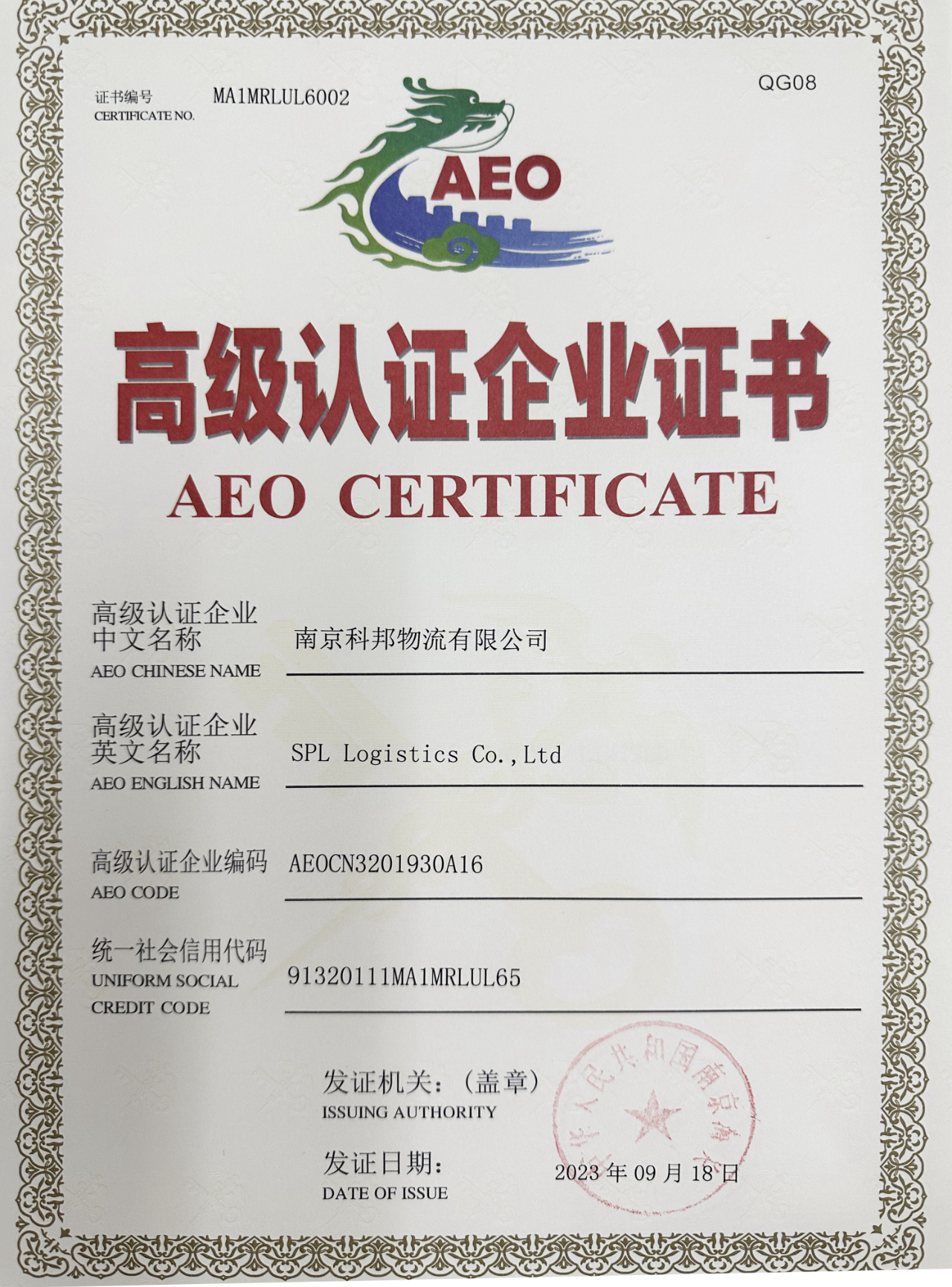 9月18日,南京科邦物流有限公司順利通過海關AEO高級認證。AEO是海關授予企業的最高信用等級,企業獲得海關AEO高級認證資質,可享受到“海關最便捷、國內最優惠、國際最認可”三個維度的優惠措施。